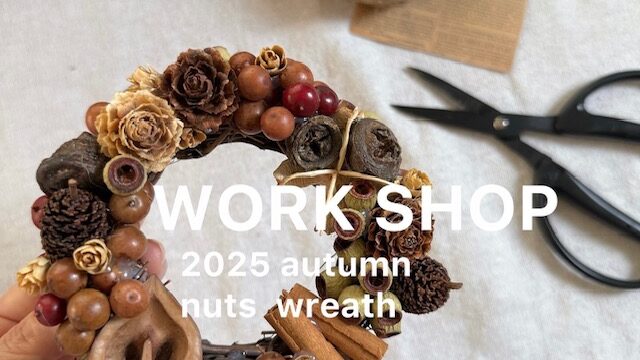 季節の1DAYレッスン 【木の実リース作り】大阪北摂ドライフラワー1DAYレッスン 2025-09-20 yuri-murakami http://aqualily-flower.com/wp-content/uploads/2025/07/大阪プリザーブドフラワー教室-アクアリリー.png 大阪のプリザーブドフラワー・ドライフラワー教室『アクアリリー』
