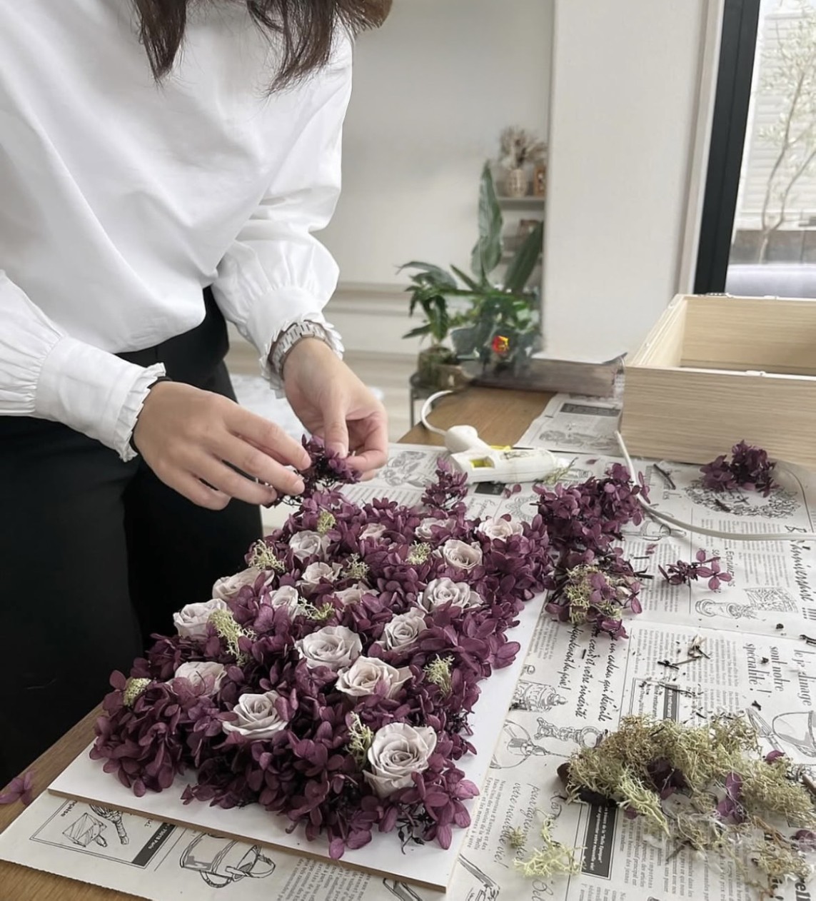 実際にプリザーブドフワーアレンジを手作りしながら教室の雰囲気や受講の流れを確認いただければと思います。お気軽にお申込みください。