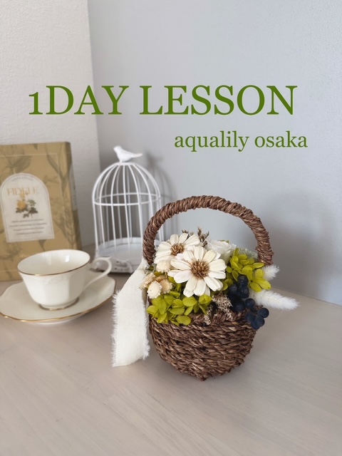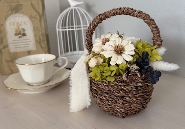 大阪北摂でドライフラワーレッスンをお探しの方へ。フラワーバスケット手作り体験ワークショップのご案内です。