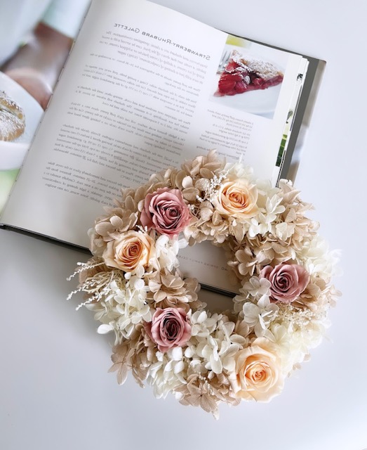 生花にないプリザーブドフラワーならではの可愛い色やデザインがプリザーブドフラワーの魅力でありますが、アクアリリーのこだわり「植物を感じるナチュラルなデザイン」として、ドライフラワーレッスンのテクニックにもこだわりがあります。ドライフラワー花材ひとつひとつ。季節ごとに出会える花材も異なりますのでしっかり季節を味わいながらご紹介しています。