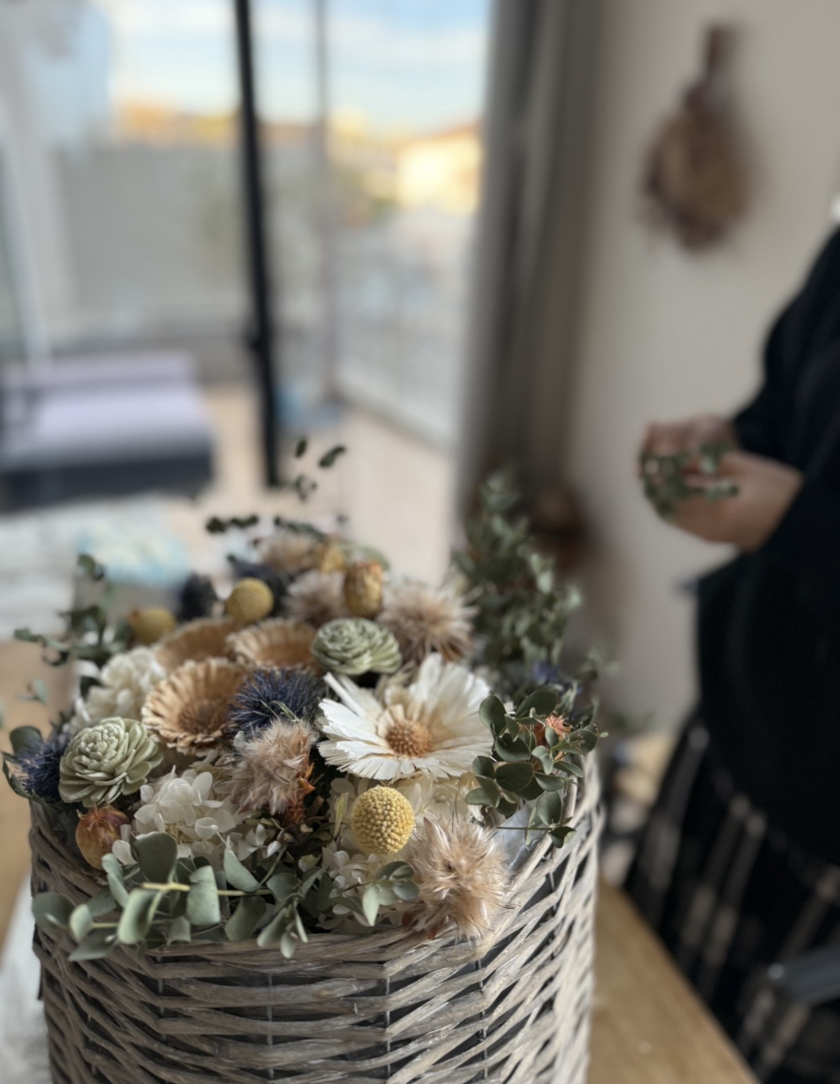 植物のあたたかさや小花の愛くるしさ、ドライフラワーの繊細さやたくましさ。毎回「植物って面白いな」を感じながら皆さん楽しんでおられます。