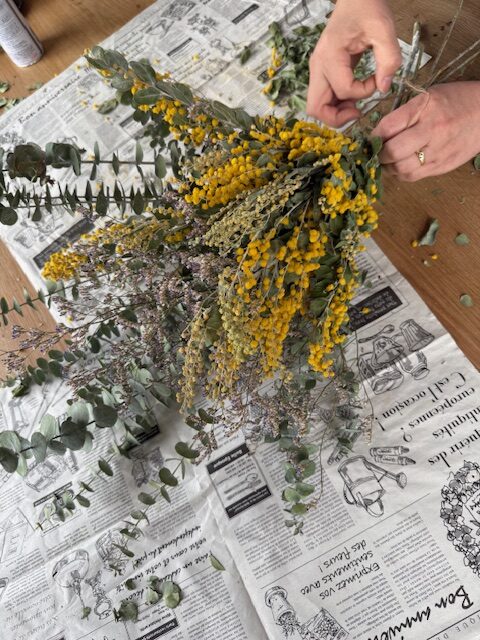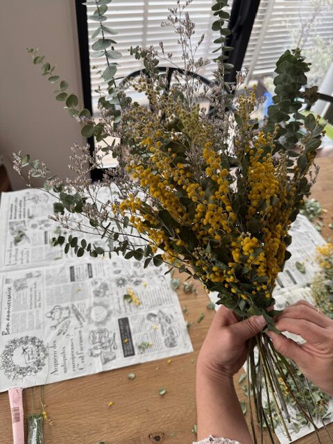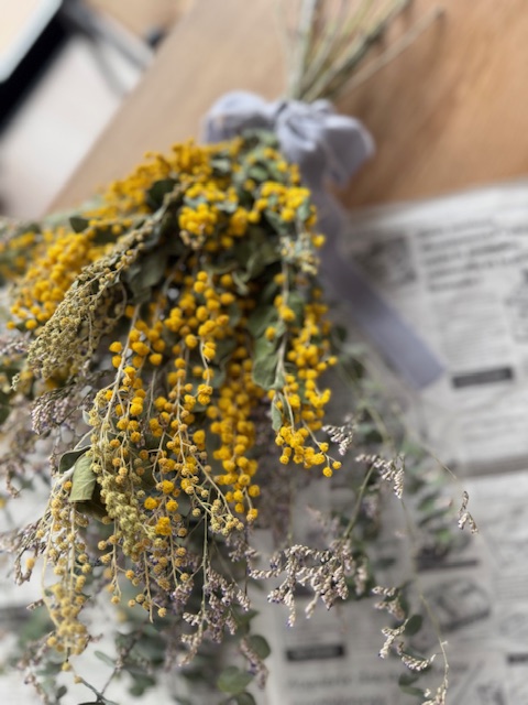大阪ドライフラワー教室アクアリリーではミモザドライフラワースワッグ手作りを単発レッスンにて募集しています。入会金不要のワークショップです。気軽に季節のお花を楽しむフラワーレッスンへお越しください。